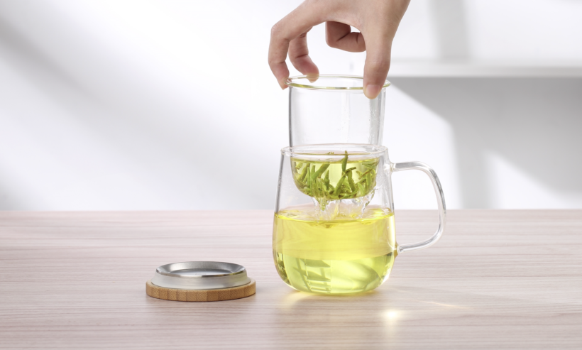 שומרת על הטעם הטהור של המשקה ומסנן זכוכית נוח מונע נפילה של עלי תה לתוך הספל. ניתן להניח את מסנן התה הנשלף על המכסה כדי למנוע מהתה להתבשל יתר על המידה.