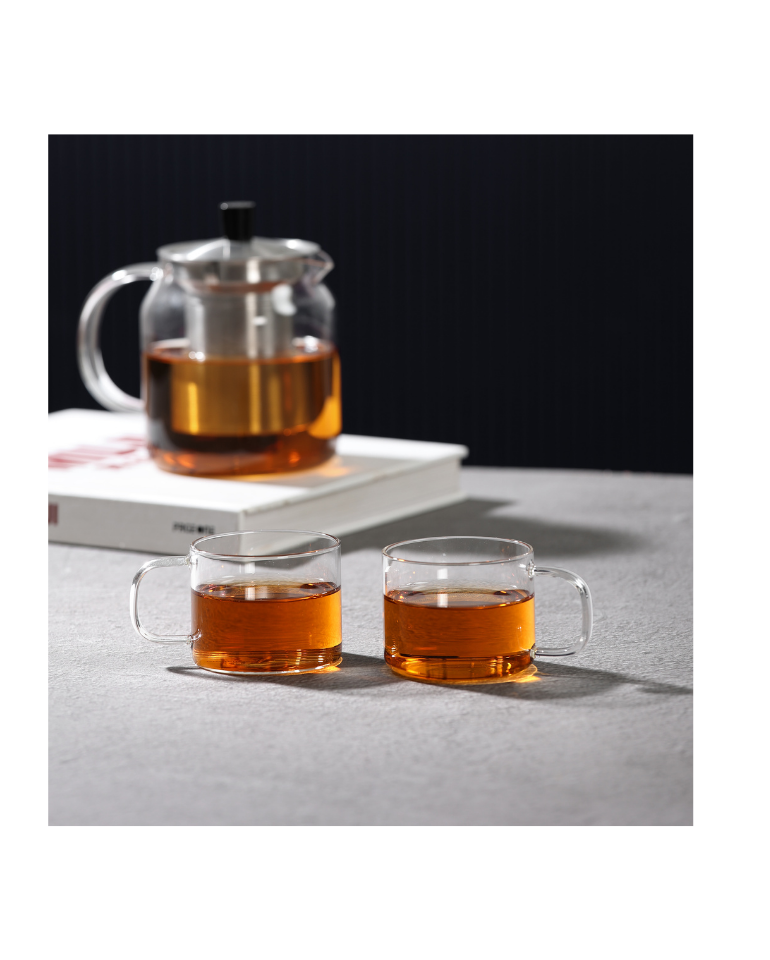 סט הכולל זוג כוסות אלגנטיות עם ידית, מתאים בצורה מושלמת לקפה ותה.