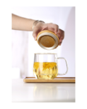 שומרת על הטעם הטהור של המשקה ומסנן זכוכית נוח מונע נפילה של עלי תה לתוך הספל. ניתן להניח את מסנן התה הנשלף על המכסה כדי למנוע מהתה להתבשל יתר על המידה.