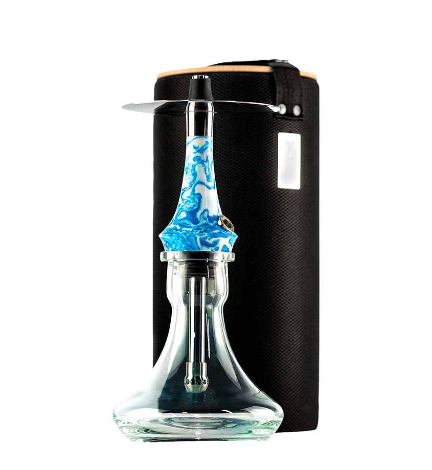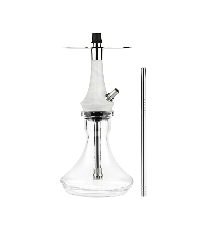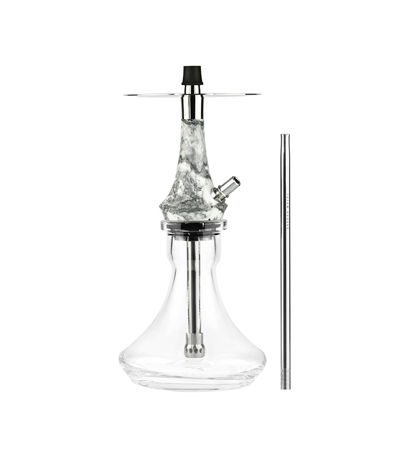 נרגילת מיני בגובה 37 ס"מ מנירוסטה כיסוי שיש מלאכותי. מחבר מתחבר בחיכוך. ניתן לשלוט בסחיבה על ידי דיפיוזר מתפרק החלקים החיצוניים של הנירוסטה מלוטשים ונותנים אפקט של מראה